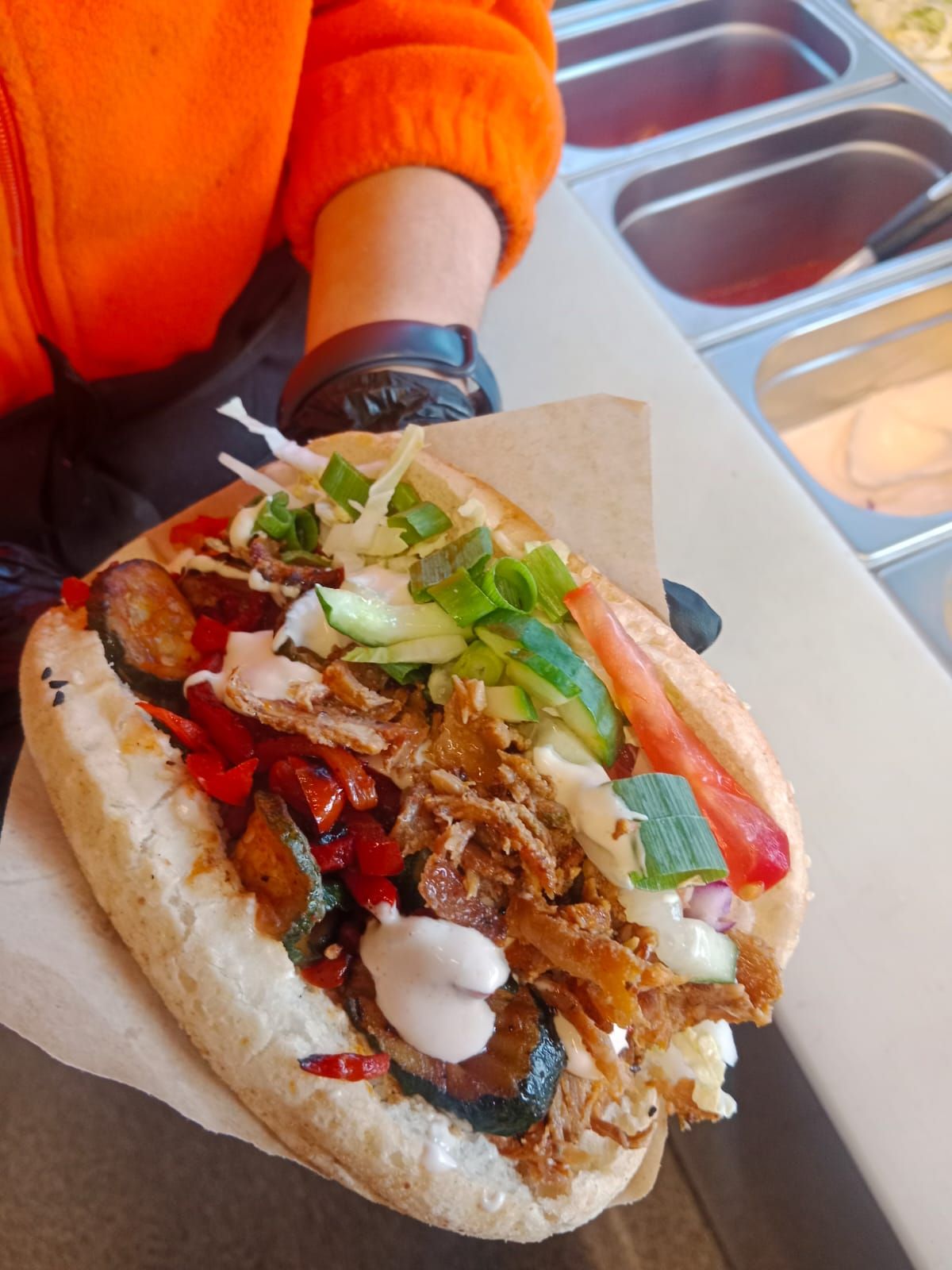 Mięso najwyższej jakości o nieprzeciętnym smaku dopełnia każde nasze danie, począwszy od naszej tortilli/lawasz 1-1-2 po zestawy i dania w bułkach. Oprócz soczystej wołowiny, aromatycznego kurczaka mamy również w ofercie nieprzeciętny w smaku karczek. Dobrze upieczone doskonale współgra ze świeżymi warzywami i naszymi autorskimi sosami.